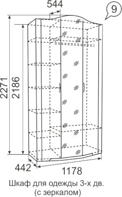 Трехдверный шкаф для одежды с зеркалом Виктория 9 (Ижмебель)